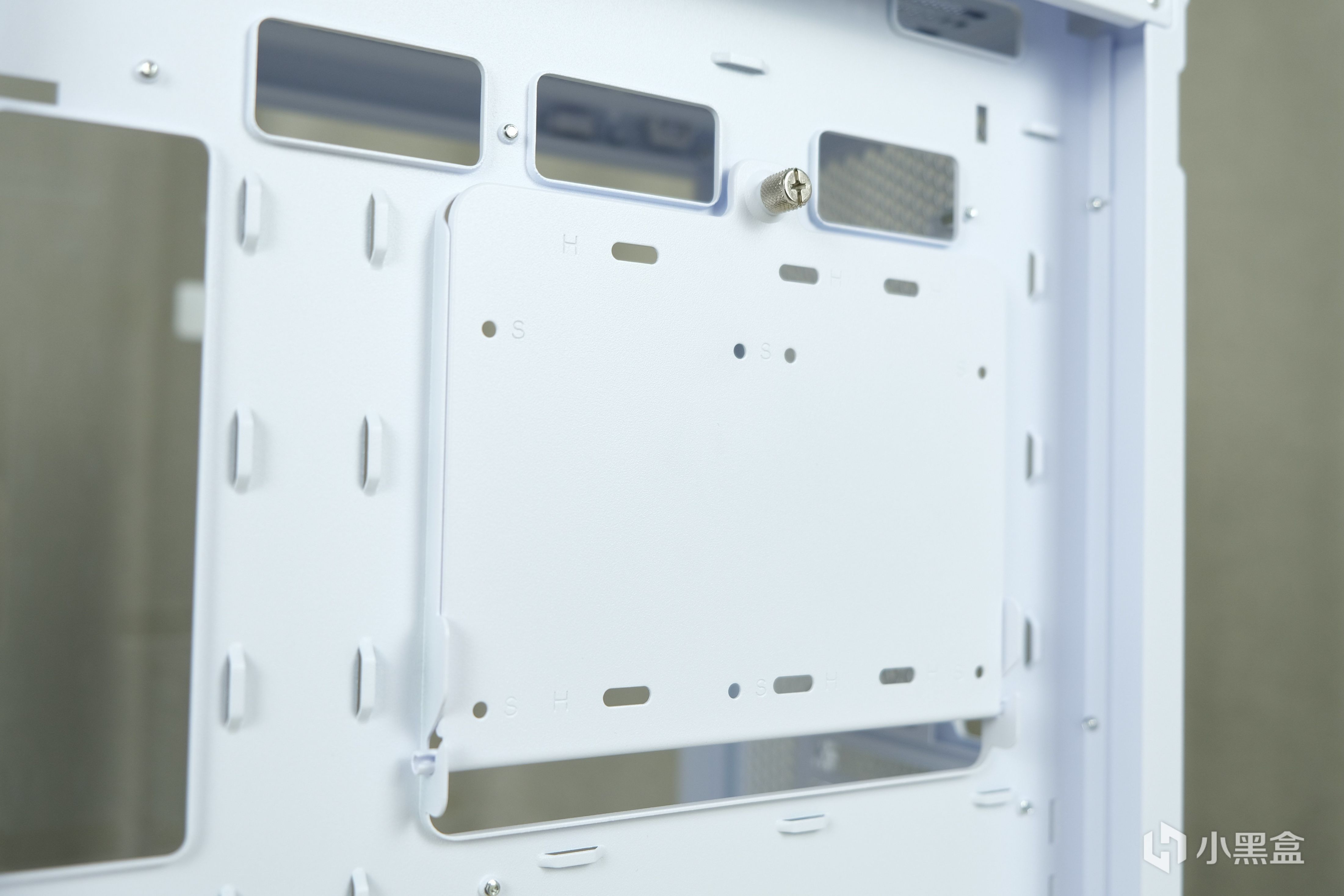 ▼而硬盘支持方面,新镜界背板处的硬盘架可以安装2个2.5寸固态或者1个机械硬盘,加上电源仓侧面靠近前面板处的2.5寸固态位足以满足常见的家用配置。