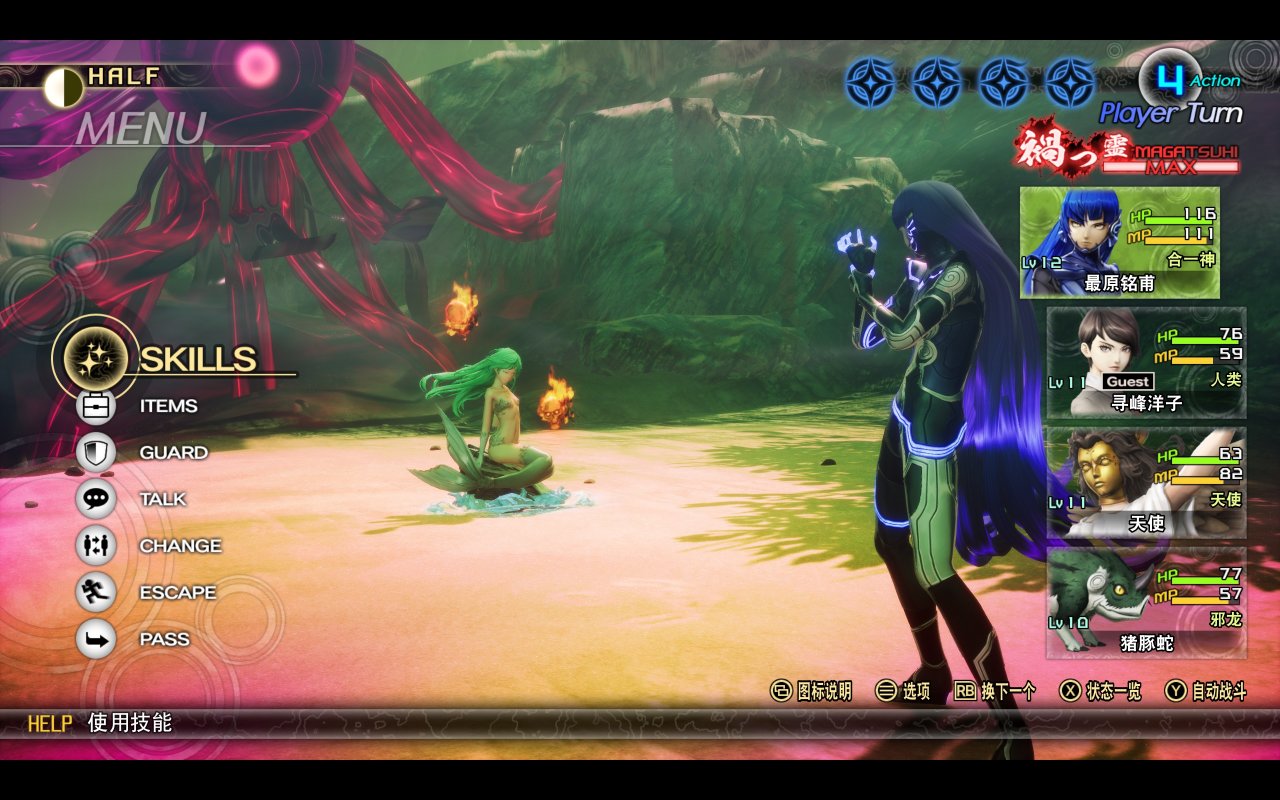 多多戰鬥,積攢禍靈槽,可以釋放一個極爲強力的BUFF技。主角默認技能是全傷害暴擊,而隨着完成支線,還能獲得其他種族的禍靈技,擁有其他強力效果。值得大力好評的是仲魔即使在後臺也可以獲取經驗,不用擔心部分仲魔的等級無法得到充足成長了!