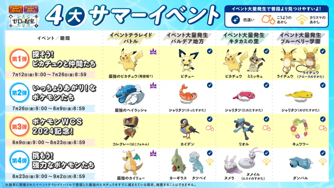《宝可梦朱紫》宣布在7月12日8:00~9月2日7:59期间举行4大夏日活动: