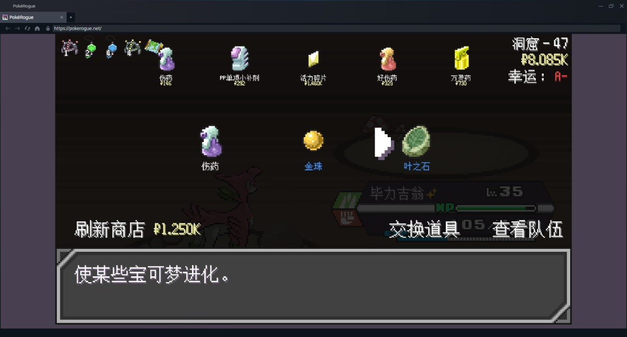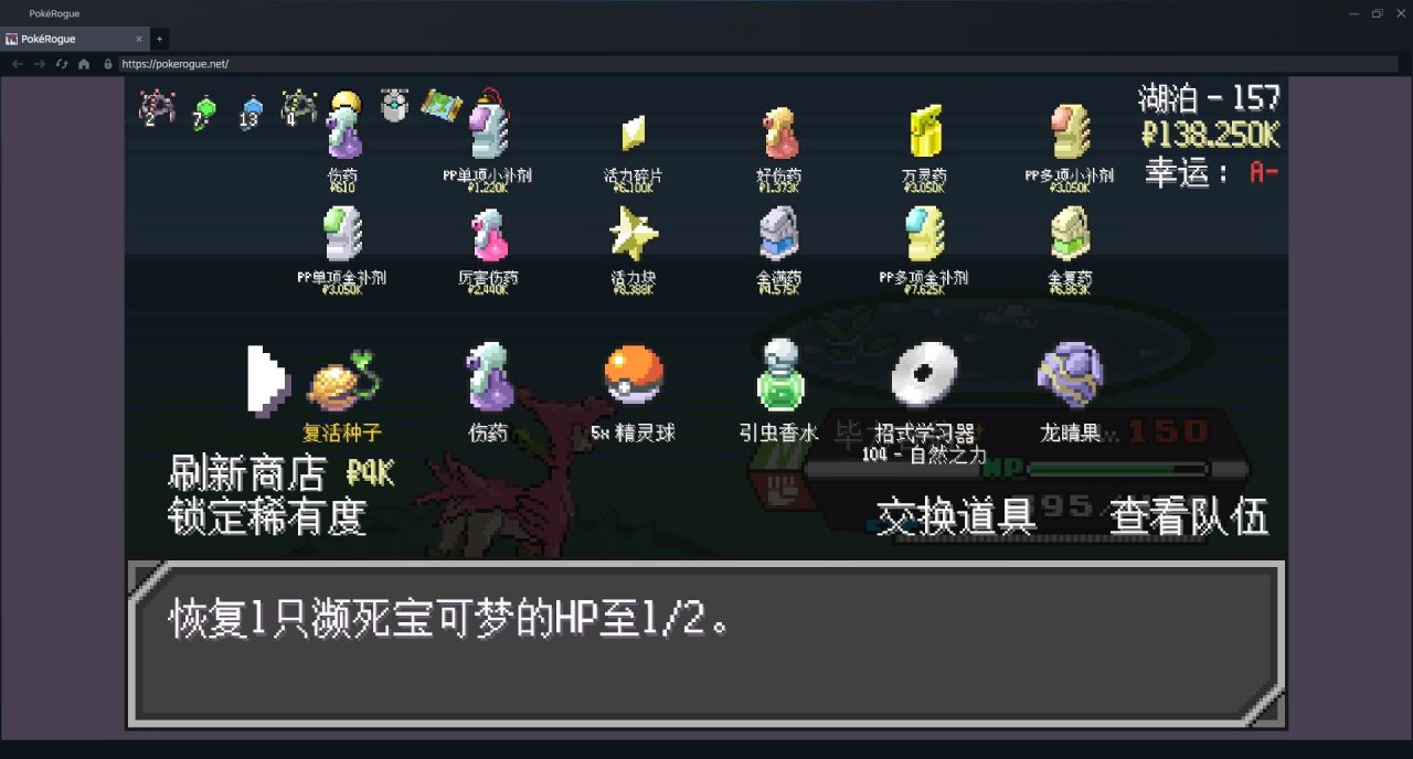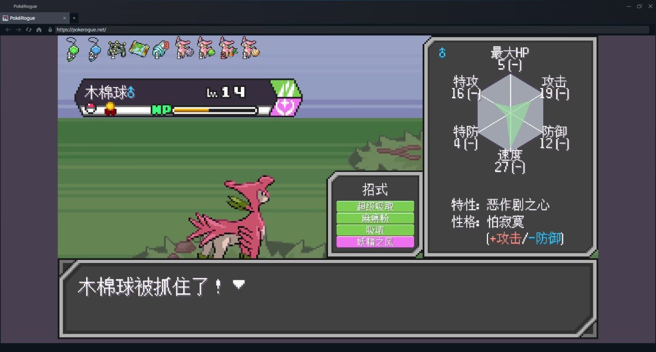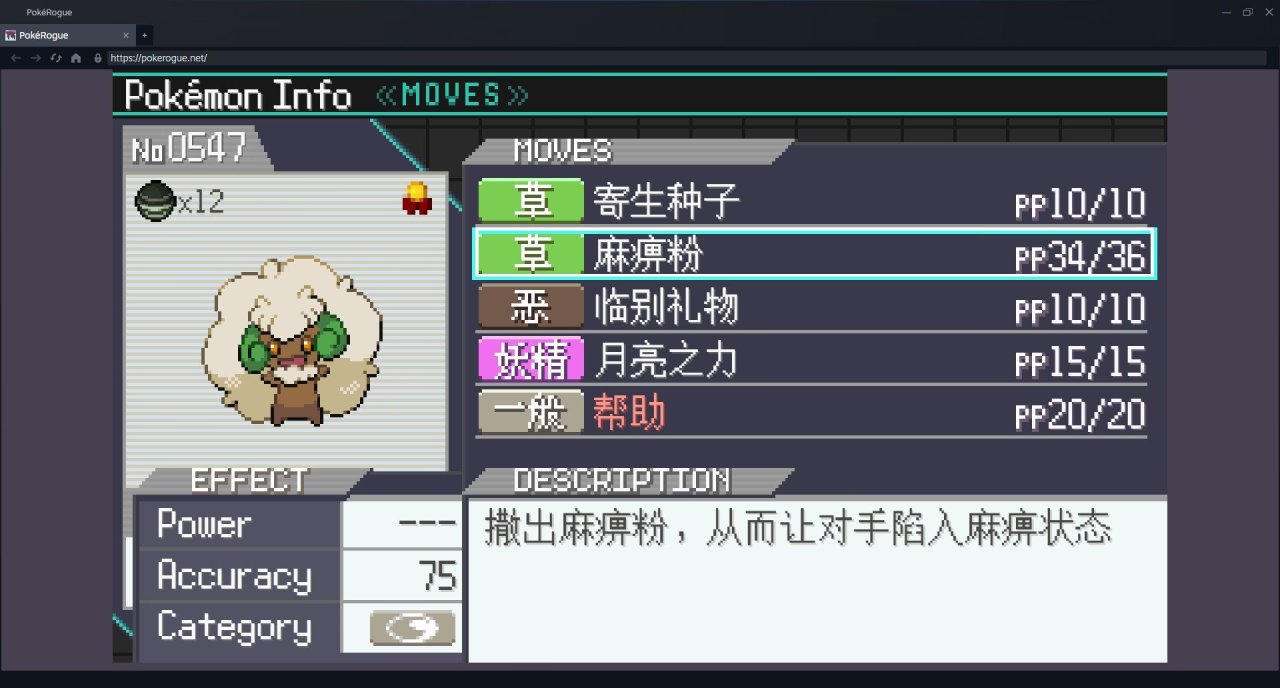 —50層—   不好打的寶可夢就素質他。風妖精催眠後,盾菇掛種子加光合作用開始折磨