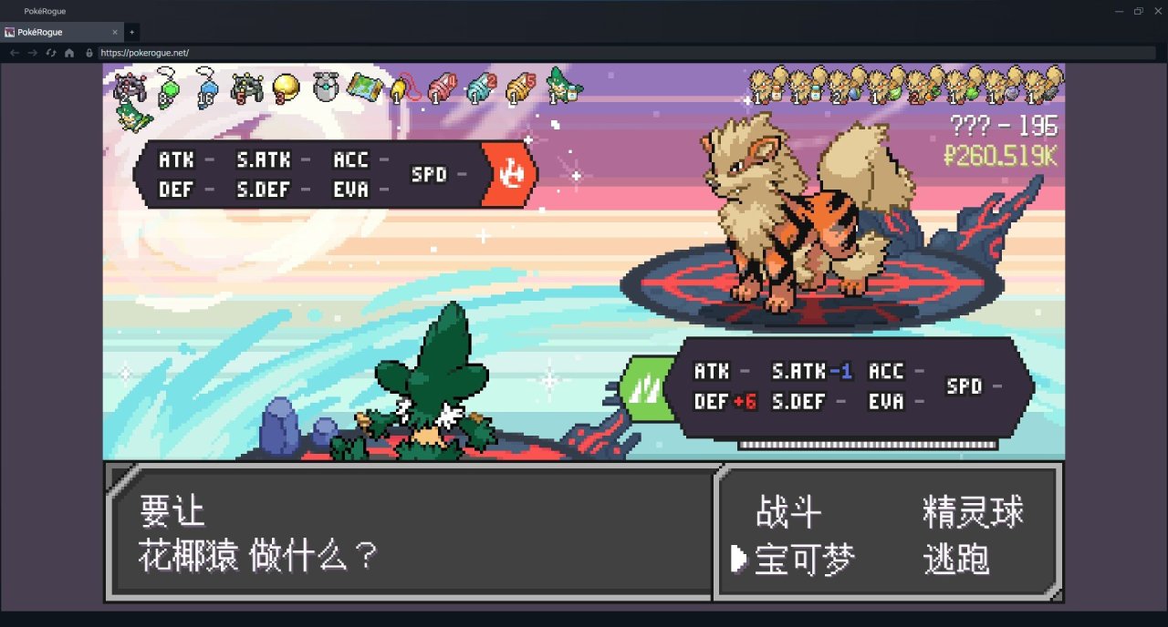 在他輪換黑魯加上來的時候鐵壁強化一次,四倍弱火當然不能跟他硬剛。接棒給花椰猿,mega黑魯加的熱風又給我們焦香之軀加了2級防禦。