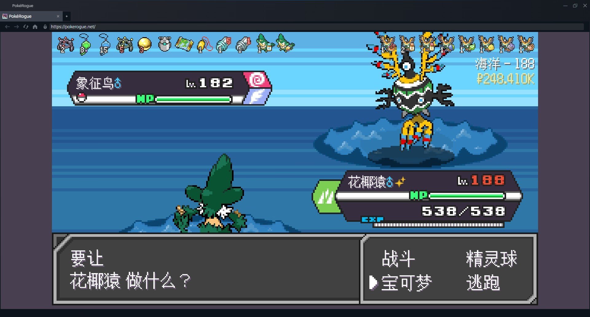 又換上了裂空座,我們換上堅果啞鈴喫下暴風,血量沒過半。先守住一次,裂空座一直用暴風。再用吸取力量回滿血,隨後裂空座連空三下暴風,被陀螺球打到1格血後逃跑了。換上了僕刀將軍