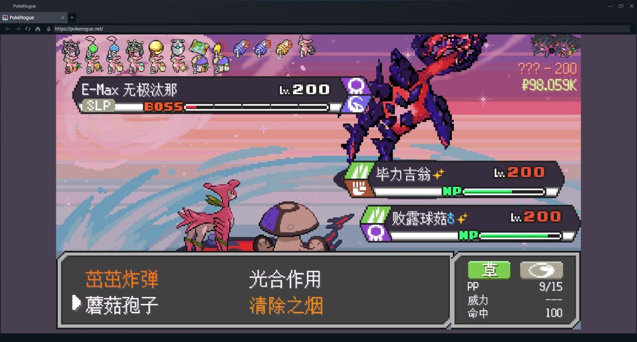 二階段嘛,畢力吉翁在一側輸出。盾菇蘑菇孢子睡眠後,掛上寄生種子。睡着了就用清楚之煙清buff,醒了就繼續睡他。無極汰那從白天睡到晚上,從晚上睡到,沒有白天了,該進我的精靈球了