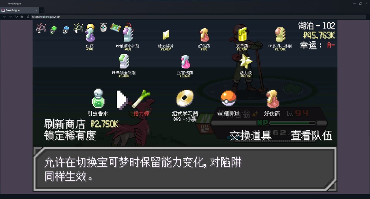 —51層—   纏紅鶴這東西其實挺恐怖的。如果開始就進湖泊,21層遇到他。沒有強力的初始寶可夢,十多級的初始形態隊伍可能會被薄紗