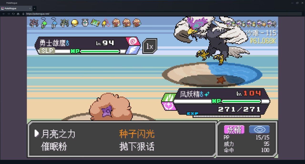 那就只好素質你了,盾菇掛上種子後開睡就是了。最後裂空座用風妖精月亮之力解決,千面避役也就是一發種子閃光。