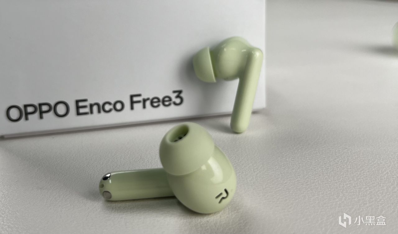 倉蓋開合和磁吸體驗跟OPPO Enco Free3沒什麼區別,耳機整體比較圓潤,入耳的部分有做鏤空設計,耳柄是拉長的水滴狀,一體的奶白色,觸控區域部分也做了輕微的凹陷處理,質感很好,沒有塑料的感覺。