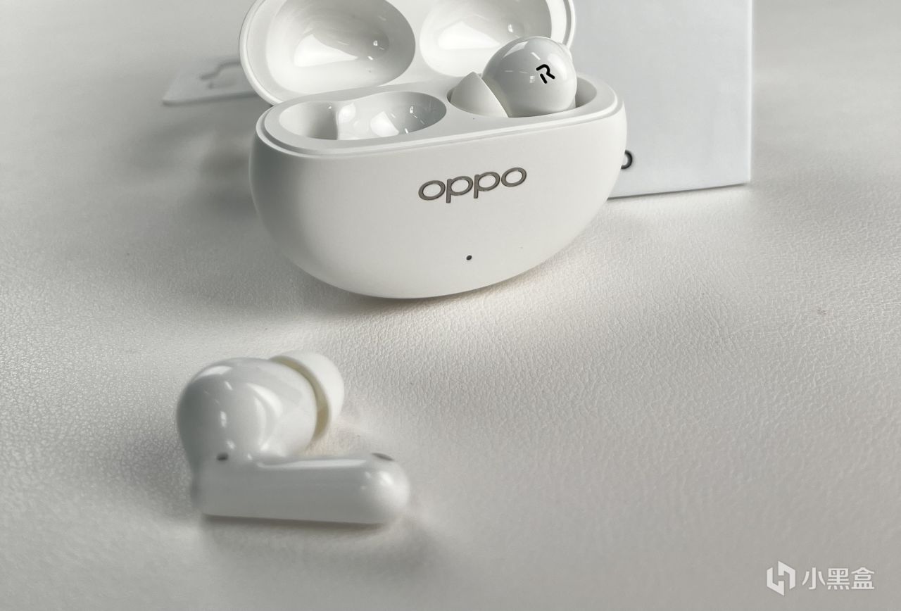 耳機倉是橢圓狀,表面是光滑亮面設計,“OPPO”的logo是金屬色,打在倉蓋開合處,質感也隨之上升一個level,開合磁吸體驗感佳。
