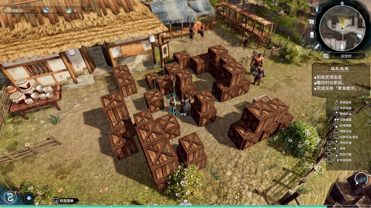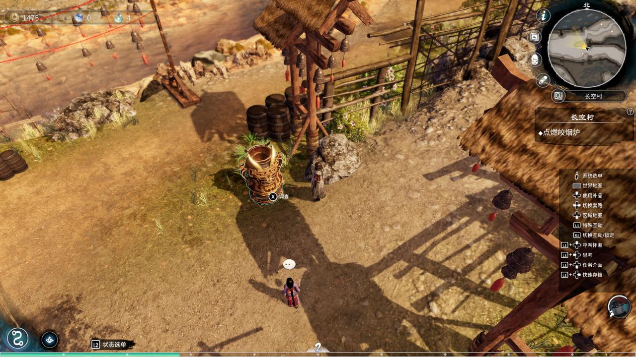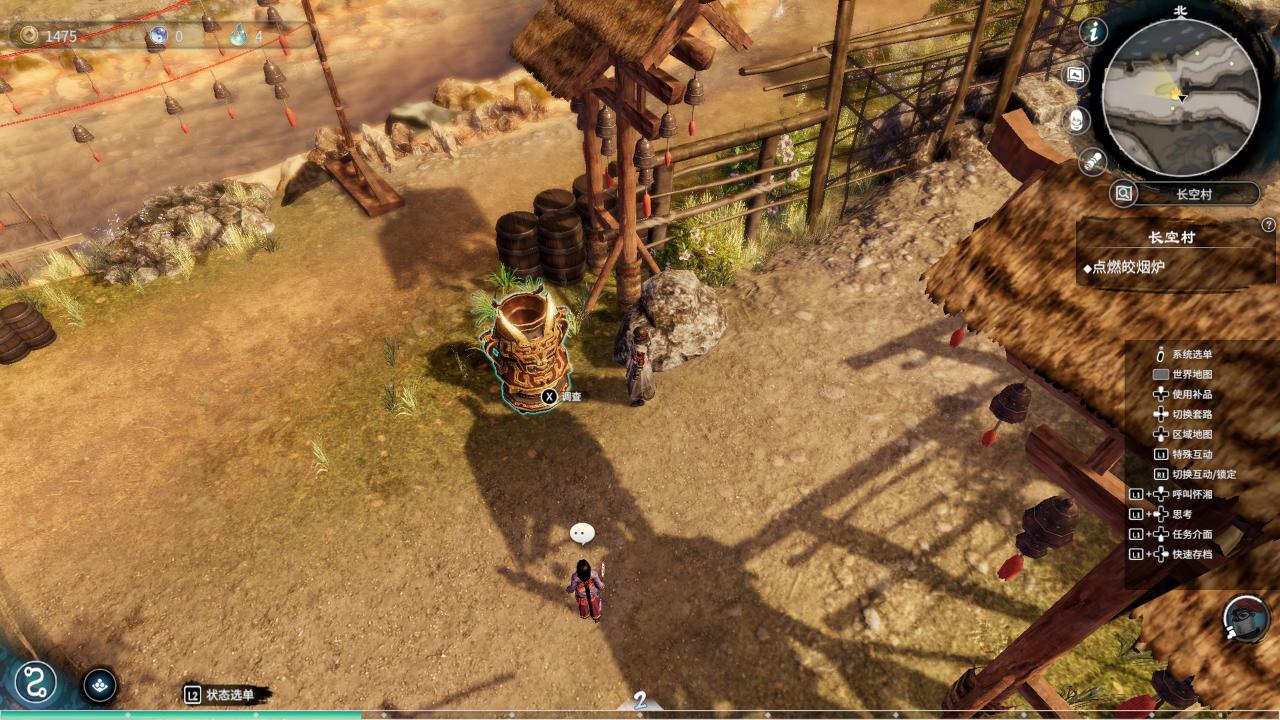 当我拿起DualSense手柄时,一直在想这款游戏的手柄操作是怎样的,因为在玩PC版的时候,它的交互逻辑和操作方式都是键鼠量身定制的,也就是这么多的按键,手柄能不能体验到那种流畅性。进入游戏后发现,技能招式被迫拆开,三角键是招式1,其他招式需要按R2键才可以施展另外4个招式,并且在物品交互时选择目标需要靠近对准,所以在选取目标和连招流畅性上就不如键鼠了。虽然操作复杂了些,但是依旧看得出制作组在操作逻辑上面下了功夫,为了更好适配手柄,这次PS5版本的操作还是比较容易上手的。在屏幕的侧边一直会有按键提示,不用担心刚刚上手的时候忘记按键而去主菜单查找。