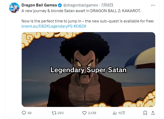 龙珠官推提示玩家,《龙珠z卡卡罗特》最近更新加入了支线任务“传说中的超级撒旦”。