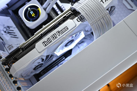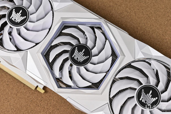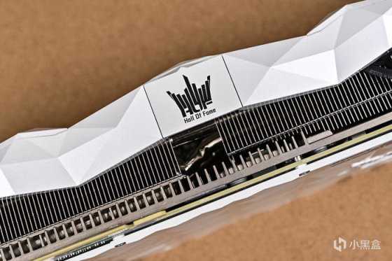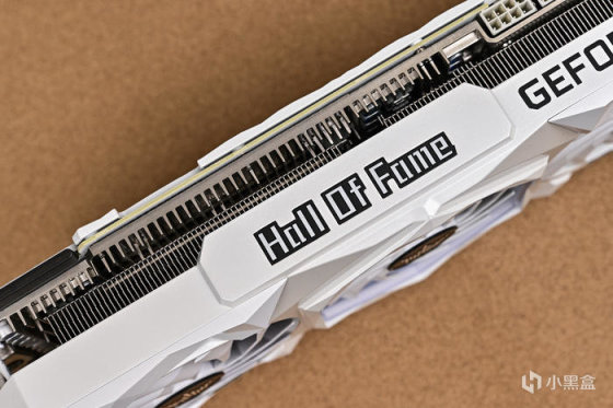显卡正侧面可以看到导风罩中央 Hall of fame Logo,具备RGB灯效。