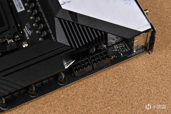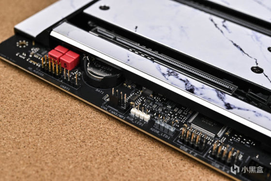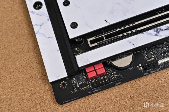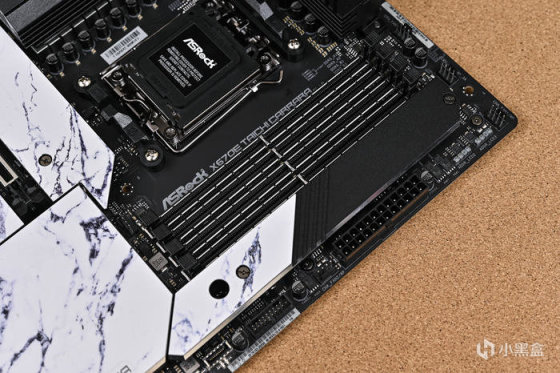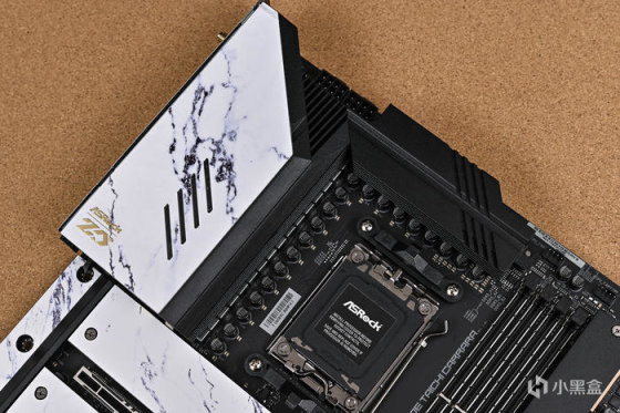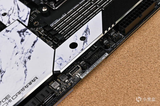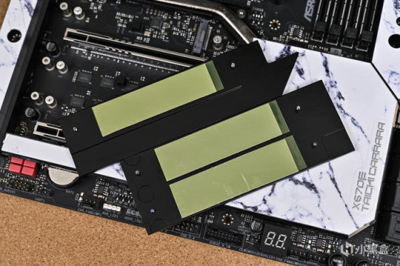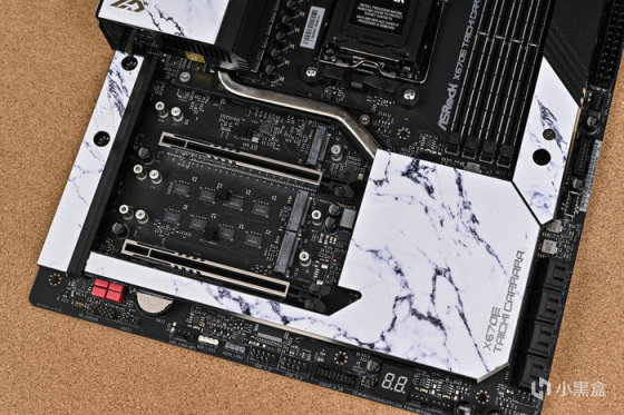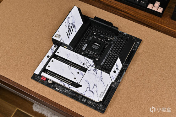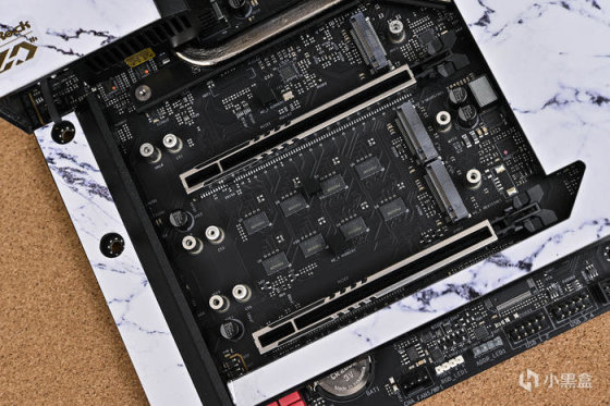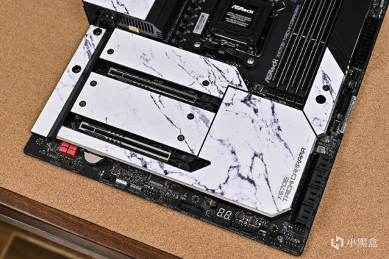 主板下半部几乎全部被大理石纹理散热装甲覆盖。