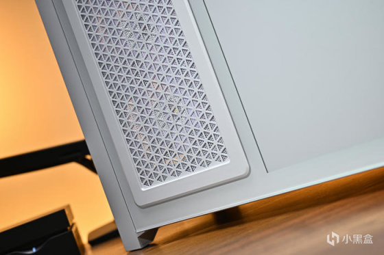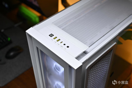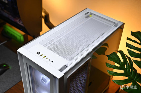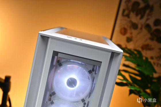 机箱顶部玻璃顶板,可以降低灰尘落入机箱的面积。机箱顶部凹槽式设计,可以顶部给冷排加装一套风扇达到顶部冷排“夹汉堡”的安装方式更高效的冷却冷排,主要这一层的风扇从主板侧看不到,让机箱内部看起来不那么拥挤。