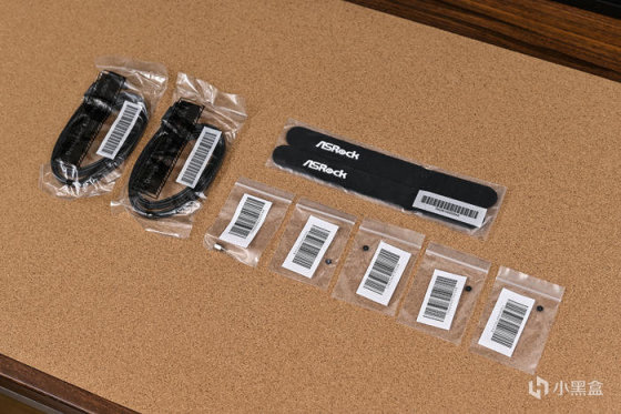 附赠了两条 SATA6 数据线、带有华擎 Logo 的魔术理线带以及 M.2 螺丝若干。