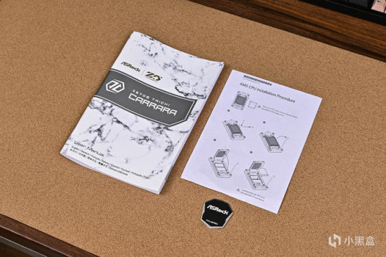 首先来看附件方面,一本厚实的说明书,一个 AM5 底座安装指南和一个华擎金属铭牌。