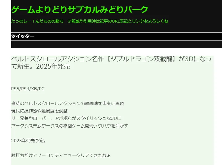 月前早些时候Arc System Works被发现在美国注册了一个“双截龙 复苏”的商标,从标题来看似乎属于复刻或重制。