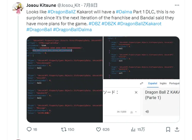 有数据挖掘者发现《龙珠z卡卡罗特》有一项未公布的“DAIMA(前编)”的故事DLC。