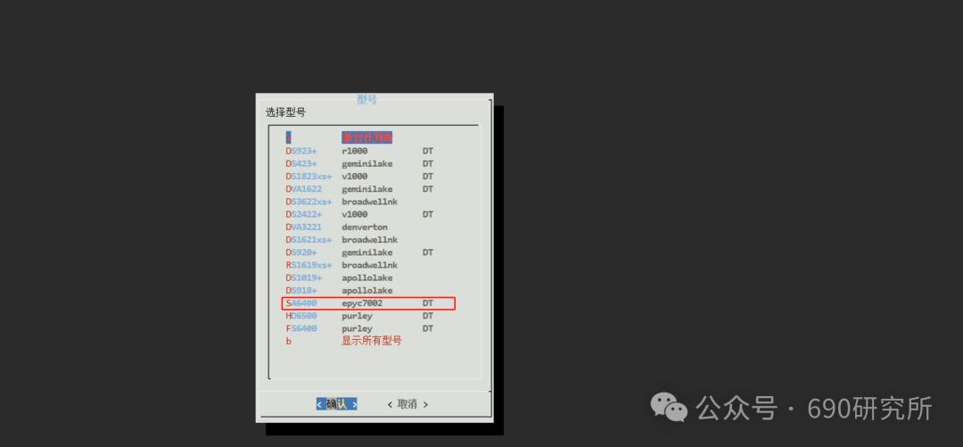 回到菜单之后到第一个,选择型号,型号的话一定要选择SA6400,系统版本选择7.1,到这一步回车。