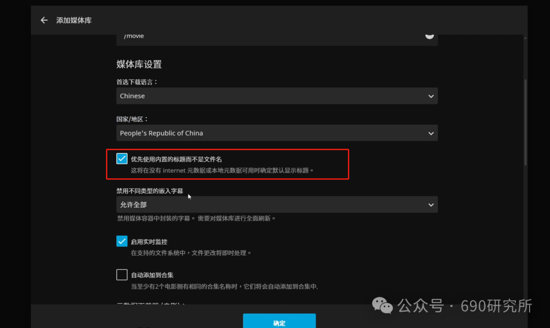 然后优先使用内置标题而不是文件名 打钩,下面将媒体图像保存到媒体所在文件夹,如果你想要配置jellyfin刮削就打上,我们是用TMM外置刮削就无所谓