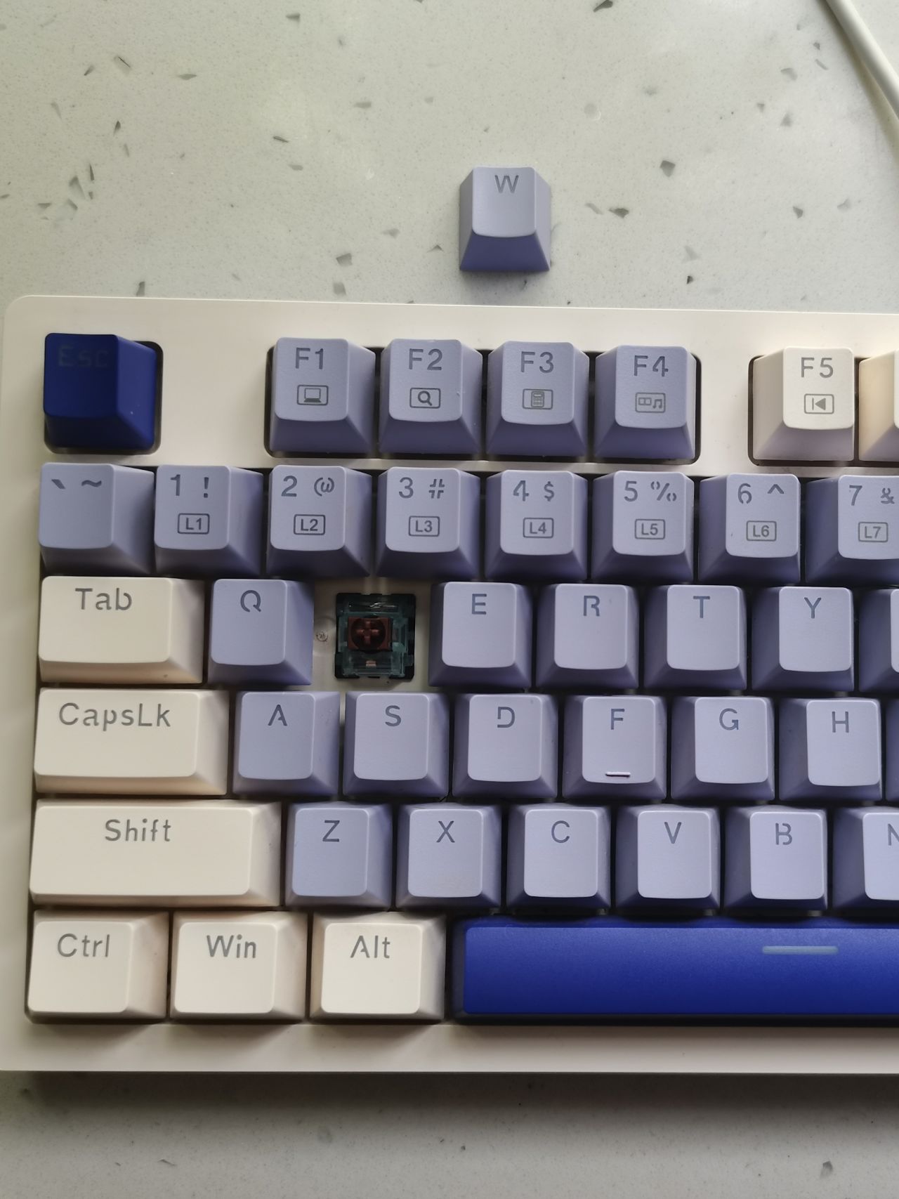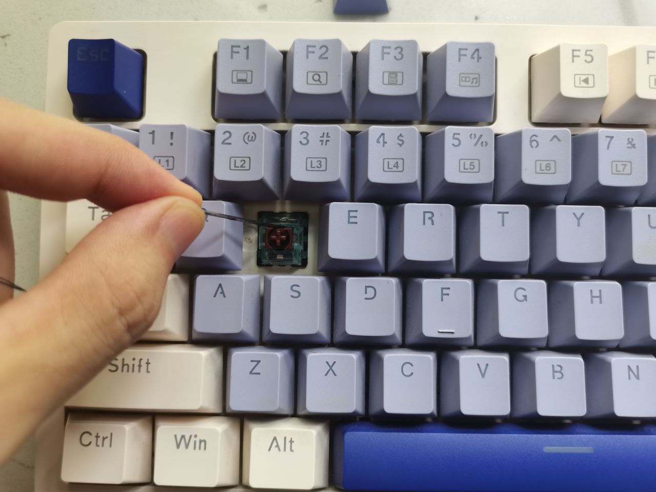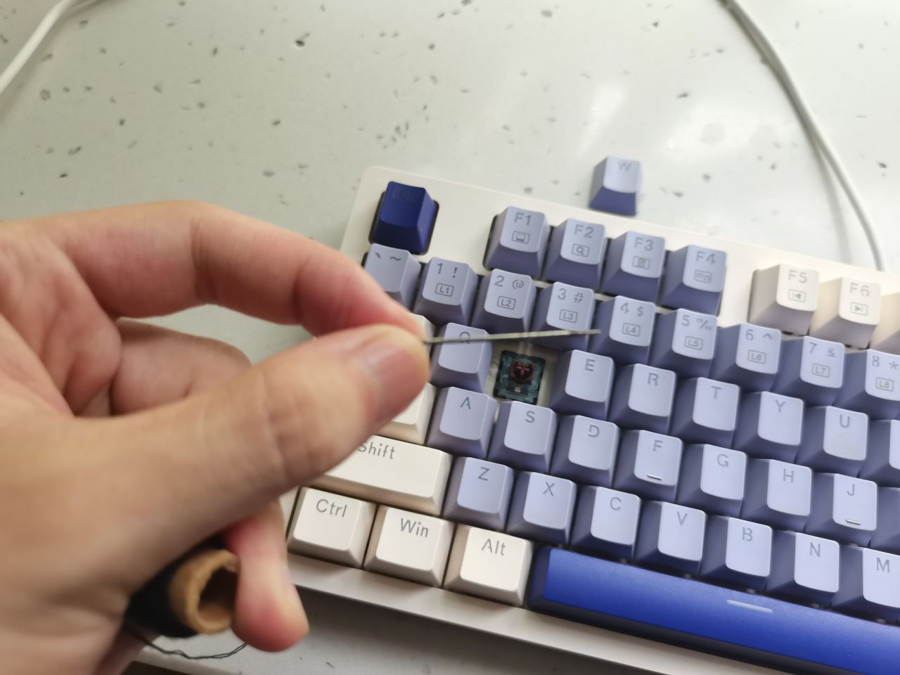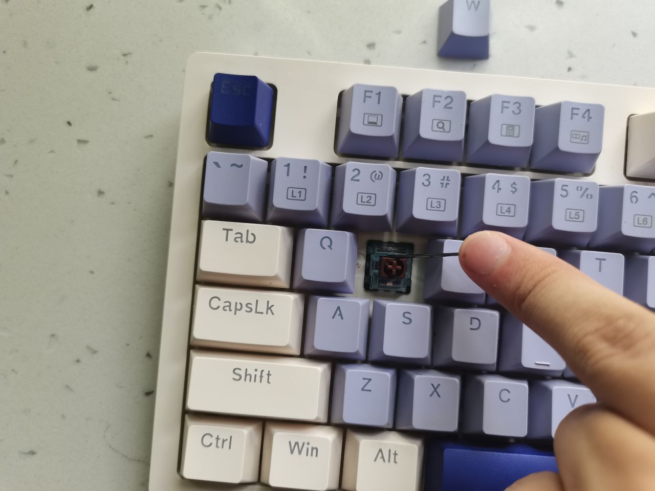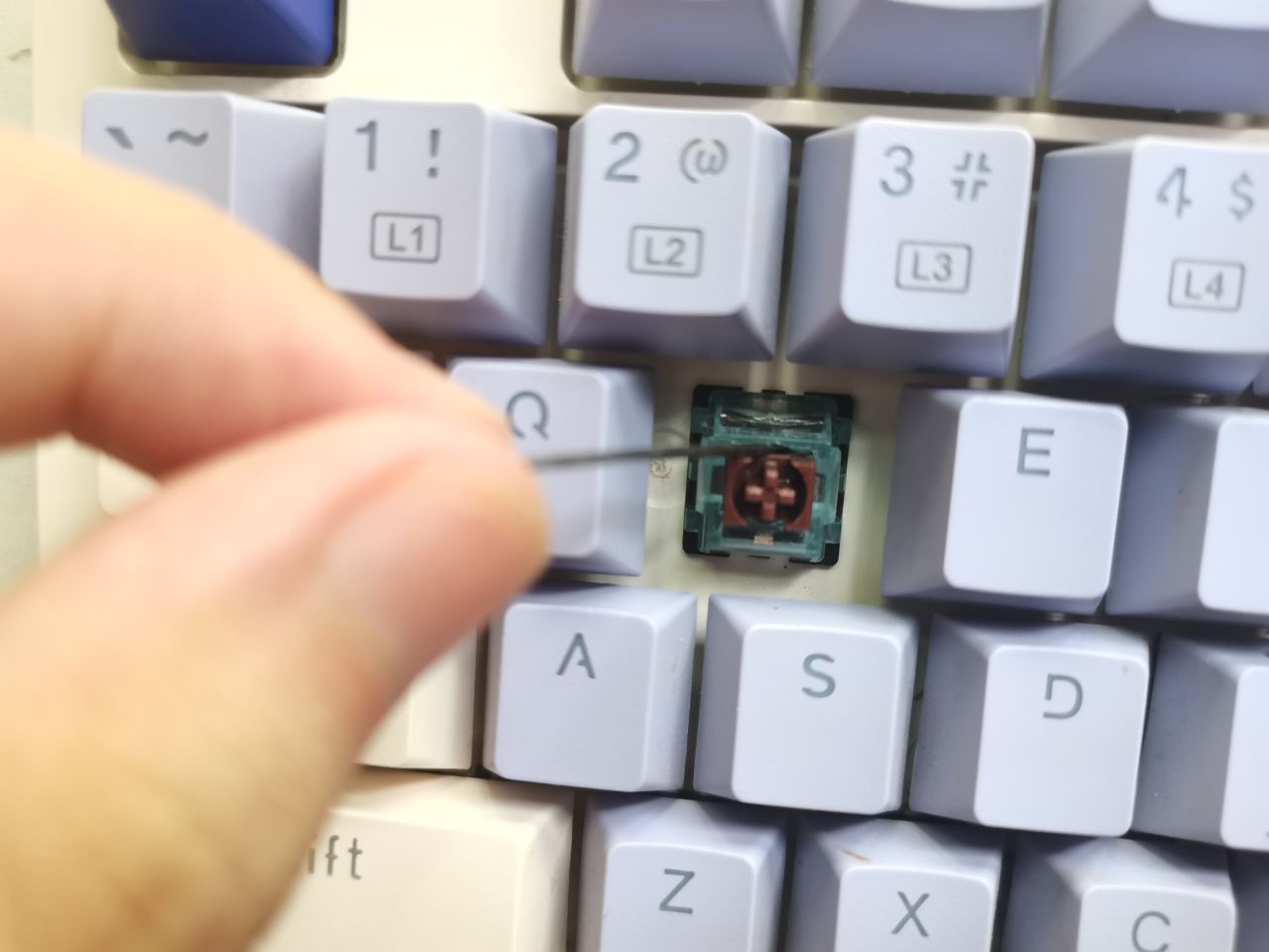 1.拿出这个该死的键盘,把他正面对着你,并用拔轴器拔开这个键