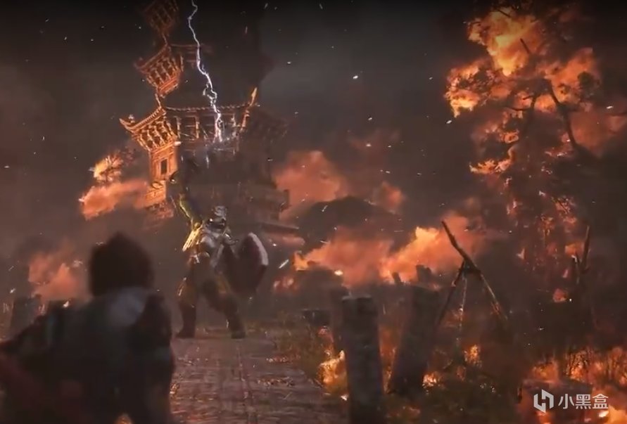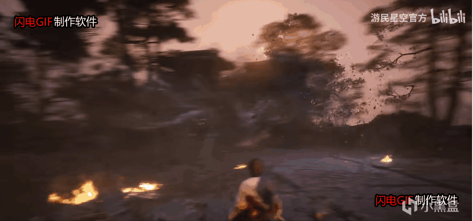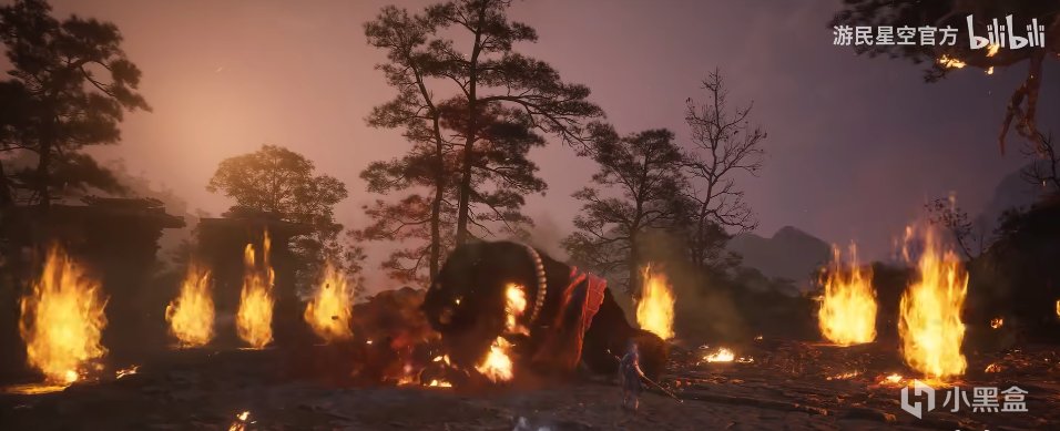 黑風山的黑熊精,會化黑煙偷襲(見動圖),會召喚炎柱(見圖2),可以結合場地進行大範圍攻擊。本身就是控火的,應該不弱火。看起來憨憨的,實際上還挺靈活。