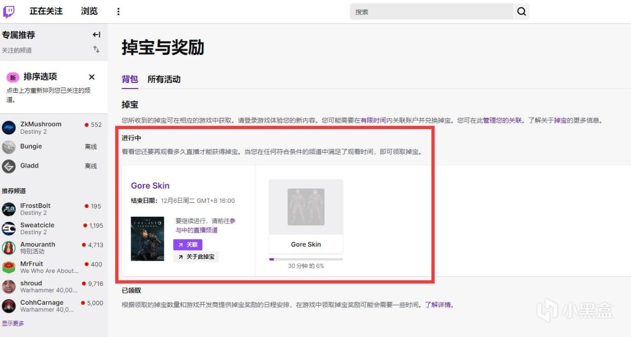 ④ 從活動頁面中找到開啓Drop的主播,和觀看時長要求