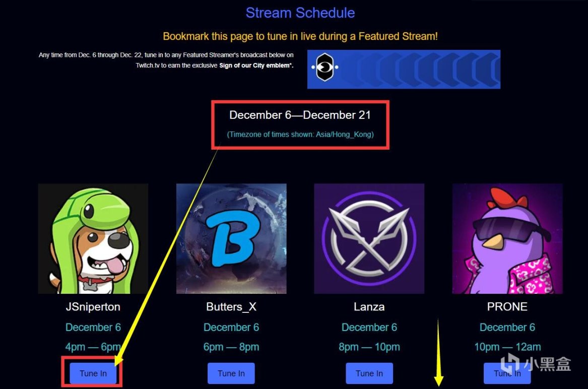 - 如果不網頁不能正常顯示,是因爲網絡問題造成的,可以保存下第二張圖,僅用來看主播直播的時間(網頁存長圖,只能存這麼長,到12月11日,超過此時間的話,大家可以使用 Drop 玩法 ④ 的方法 找到主播)
