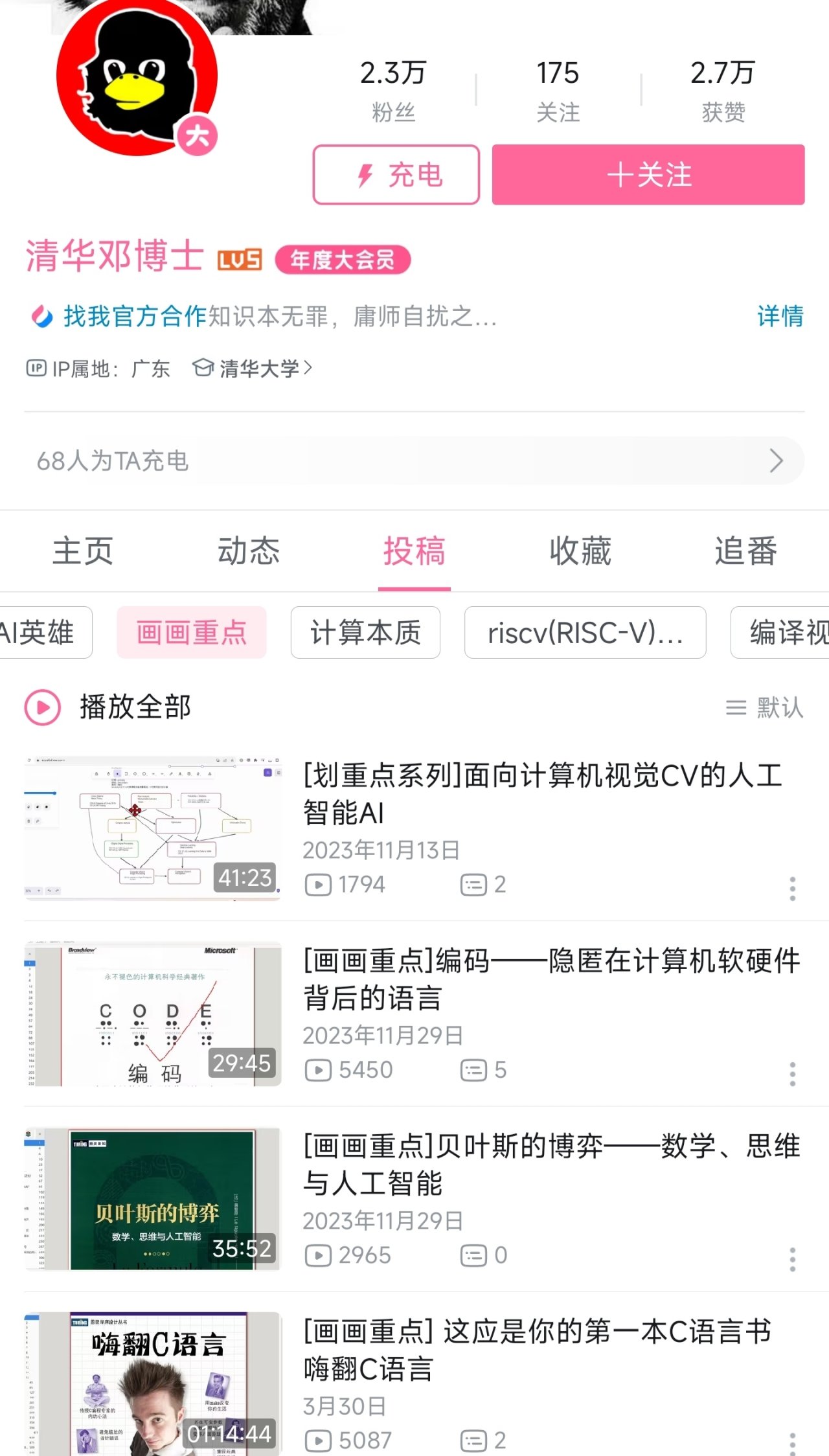 一些高校教授和学者:他们会在B站上分享自己的研究成果和科普知识 ,帮助学习者了解计算机科学的前沿动态。