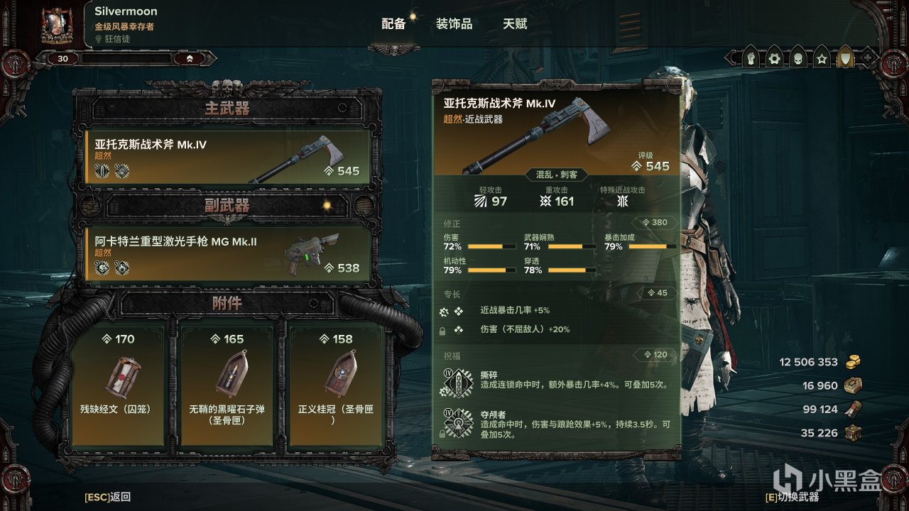 作为狂信唯一一把五围提供暴击率的近战武器(类比左轮),亚托克斯战术斧还拥有媲美匕首的攻速。既然如此,何不将他的暴击利用到极致?于是这套bd应运而生。