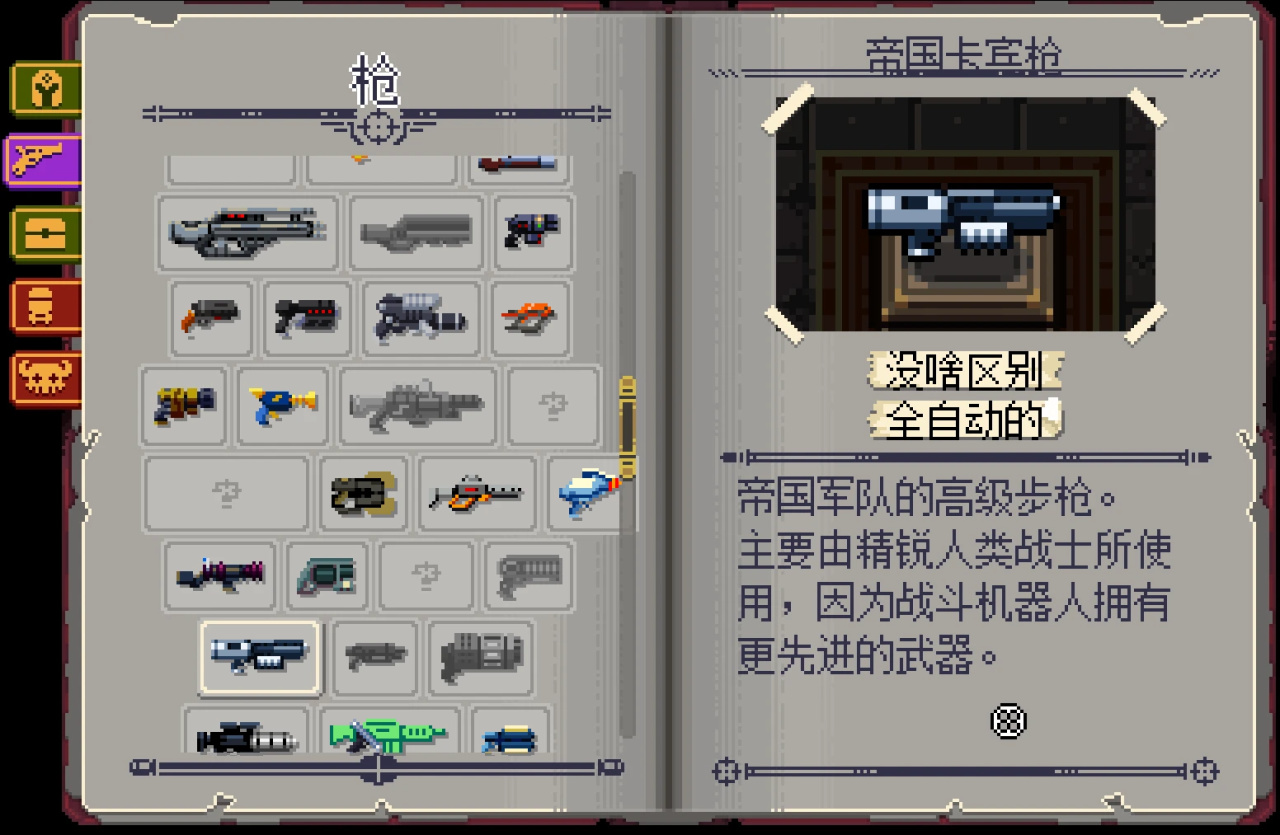 他的配枪子弹充裕,每个弹匣有10发子弹,射速较快。