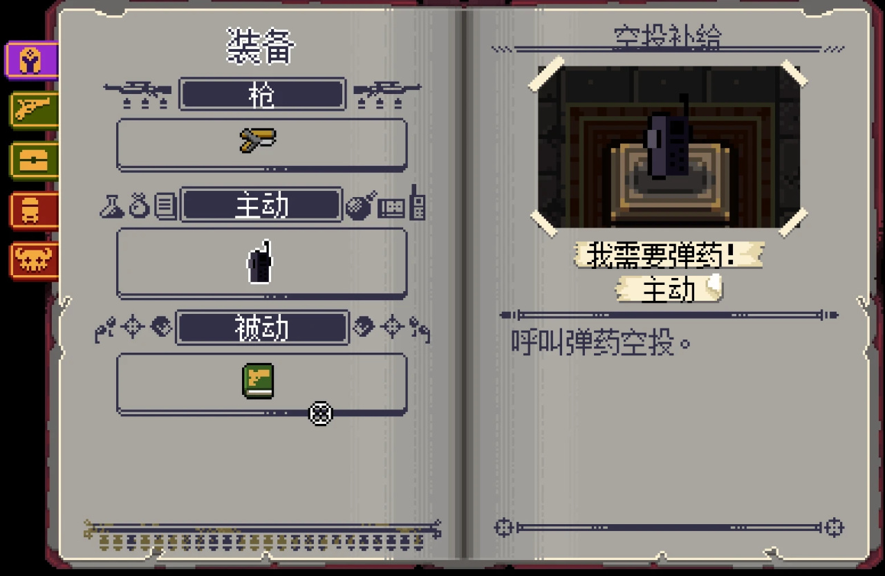 他进入地牢之后,还自带了一次外部弹药补给,任何时候,哪怕是在战斗之中,当他弹尽粮绝时,都可以呼唤空中支援,为他填装满一把枪支的所有弹药。