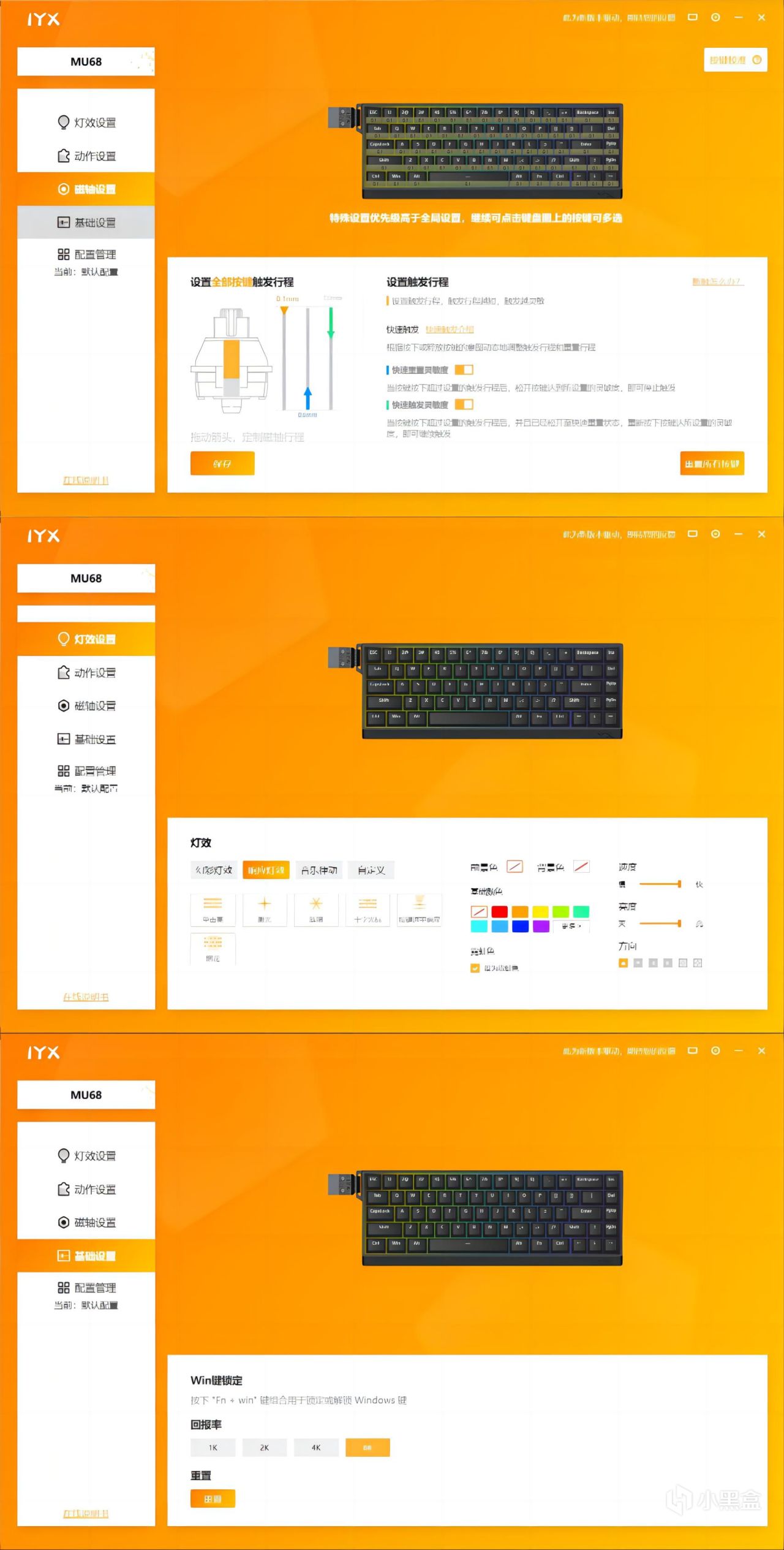 艾巖這個品牌是艾石頭的子品牌,主打中高端的量產機械鍵盤,MU68就是出自艾巖之手。目前MU68作爲Wooting平替在國內沒對手,而且基本沒有溢價,同配置比醉鹿便宜不少。