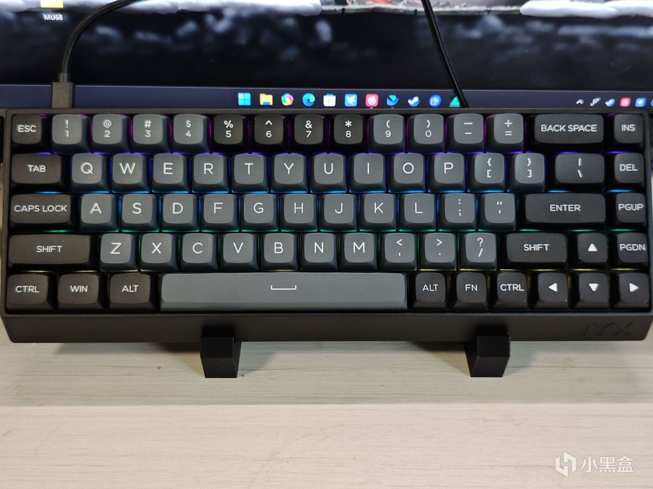陽極氧化的船殼結構的68配列,外殼也很窄,而且旁邊有一個飄帶,這就是非常像Wooting那個味道了。