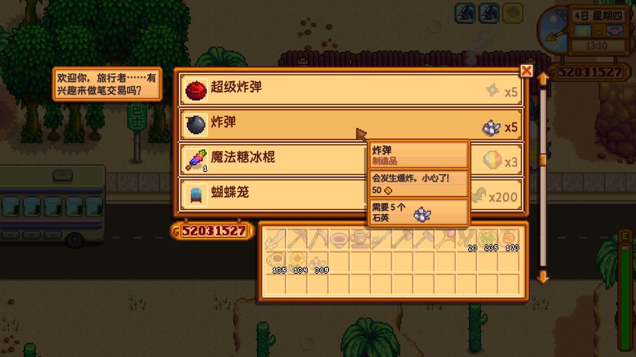 複製石英可到沙漠商人那換取炸彈(根據自己需求去使用)