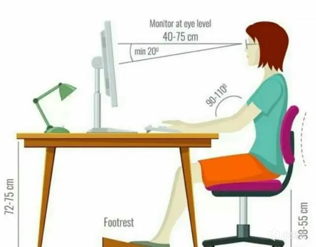 屏幕位置:调整电脑屏幕的高度,使其位于眼睛水平线或略低的位置,这样可以减少头部前倾,减轻颈椎负担。屏幕距离眼睛约50-70厘米为宜,避免眼睛过度疲劳。