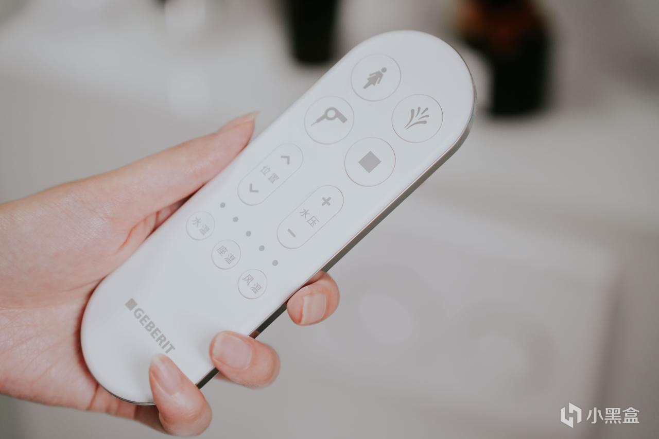馬桶右側有一鍵控制沖洗/停止功能,家中有老人的,使用過程中無需站起再蹲下進行操作,另配有遙控器手控,加大字體配以沖洗、座溫調節等圖示,老少都可以識別操作,全家使用也安全。
