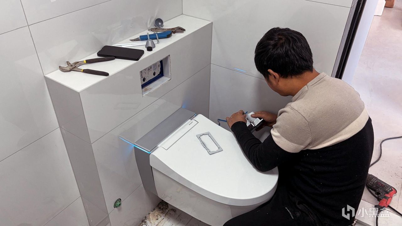 安裝師傅總共來了一次,第一次是在水電預埋階段進行水箱固定,跟水電工師傅確定預留尺寸,和後續泥工師傅協調溝通衛生間地面高度,確保水箱位置安裝正確。第二次在整體硬裝結束之後,進行馬桶安裝。