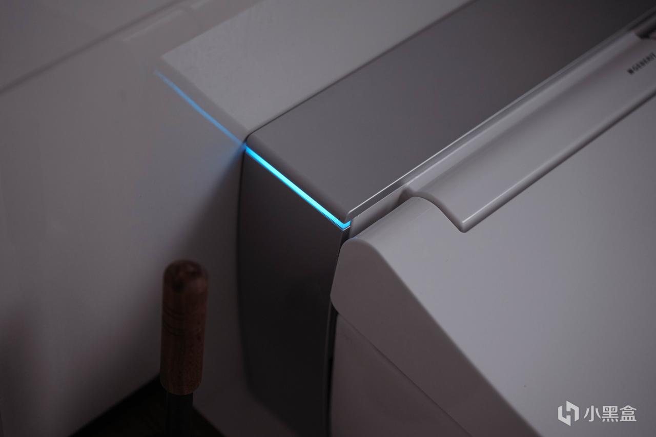 頂部後面設計雙側有淡藍色氛圍燈,光線柔和不扎眼,美觀的同時,可以充當夜燈使用,晚上起夜可以有效防撞,如廁更安全。
