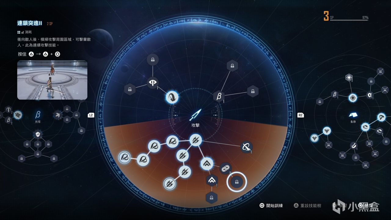 ▲除了上述提及的SP點數學習與強化之外,伊芙的血量與貝塔能量必須要藉由探索來提升;