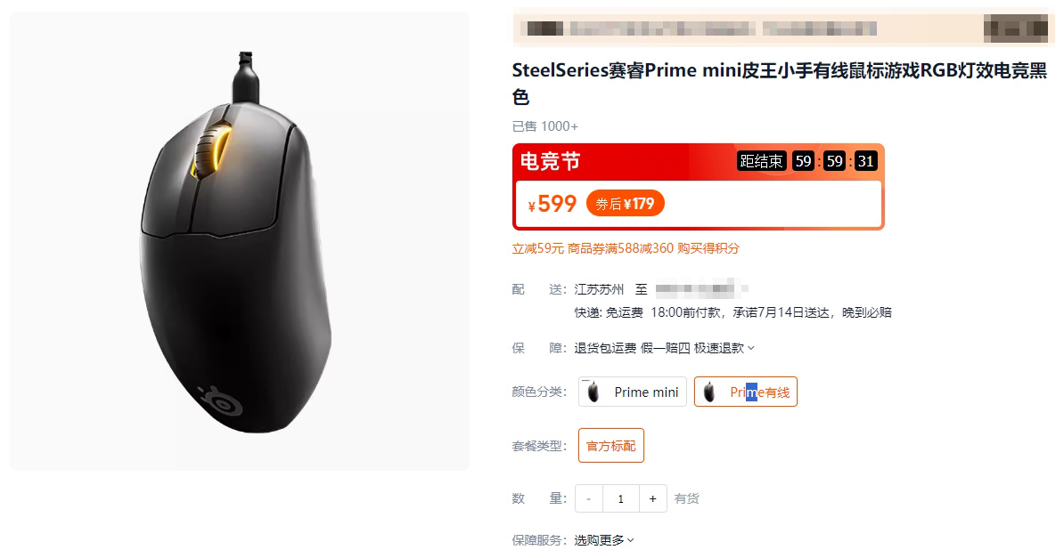 價格再往上可以看看賽睿prime和prime mini,整體性能和模具都是不錯的,性價比也還好,根據自己的情況選擇就行,價格分別是159元和139元。