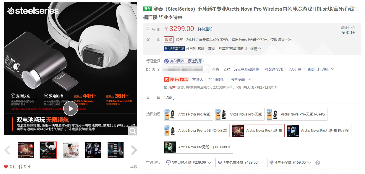 在往上看就是我個人覺得同樣算是全能選手的賽睿NOVA PRO wireless,無線三模,支持主動降噪還是支持雙電池續航,電池充電座都兼顧了聲卡和接收器的功能,基本上你能想到的遊戲耳機的功能它都配備了,除了接近500g的重量稍微重了一些,別的我覺得都還不錯了,當然,貴不是人家的缺點,是咱們太窮了。