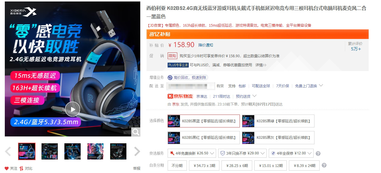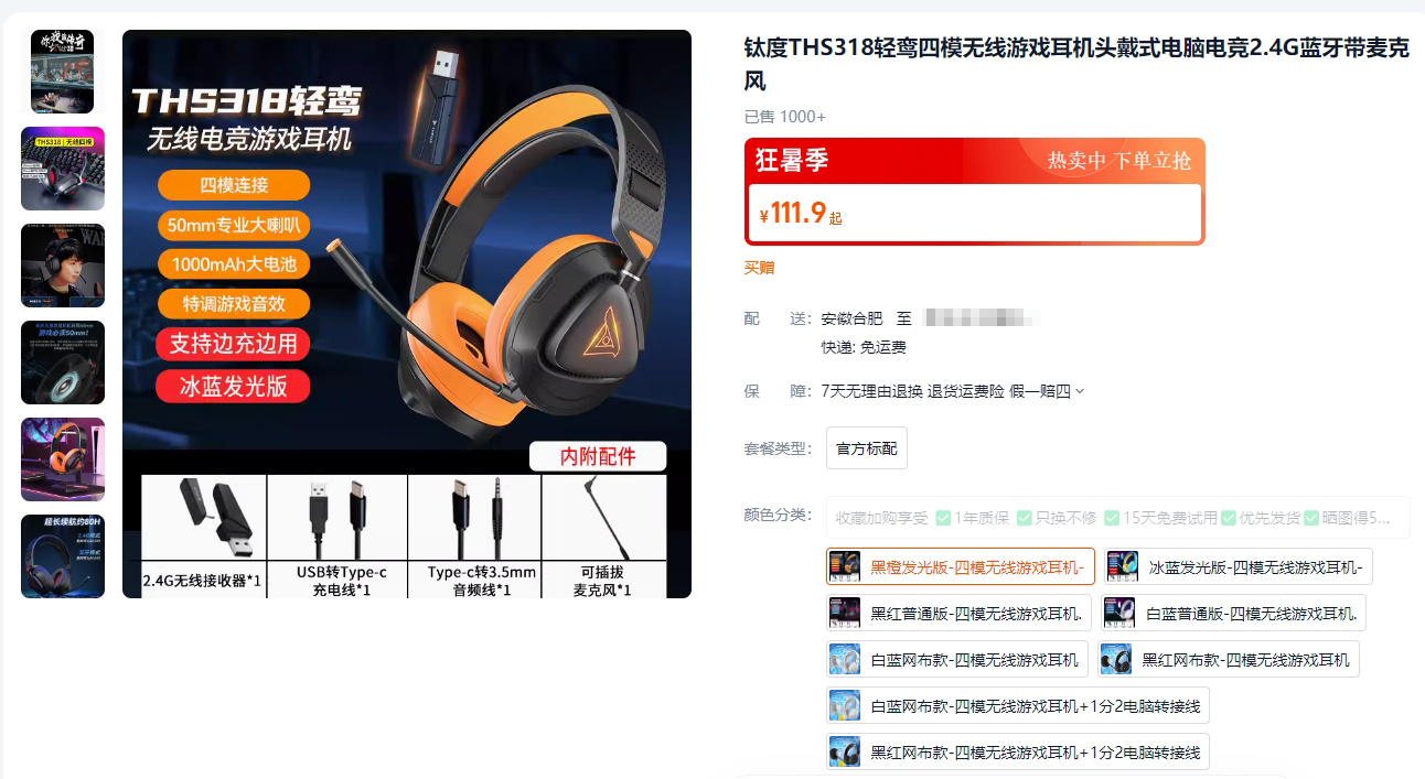 這個價位頭戴式的話可以看看西伯利亞K02BS,169的三模耳機,270g左右的重量也算是比較輕便了,以大家常用的2.4G爲例,開燈狀態下續航能到三十五個小時左右,關燈狀態一百一十多個小時作爲,略微有那麼一點虛標,不過還行,聽聲辨位的話也是這個價位排名前列的存在,大部分情況下沒啥問題。
