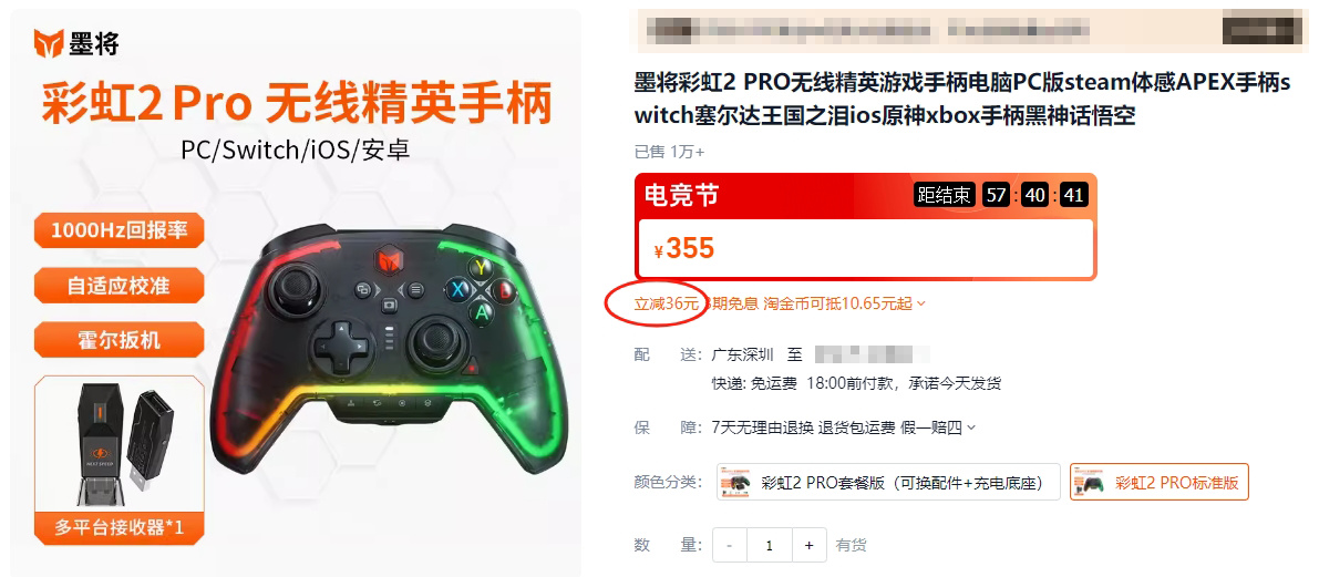 這個價位還有一款我比較推薦的產品—墨將彩虹2pro,可以說是我個人覺得最適合FPS遊戲的手柄之一了,不管是整體的握持手感,還是扳機肩鍵搖桿的手感,都非常的出色,再加上那個半透明的面板設計,299這個價格絕對是買不了喫虧買不了上當的。