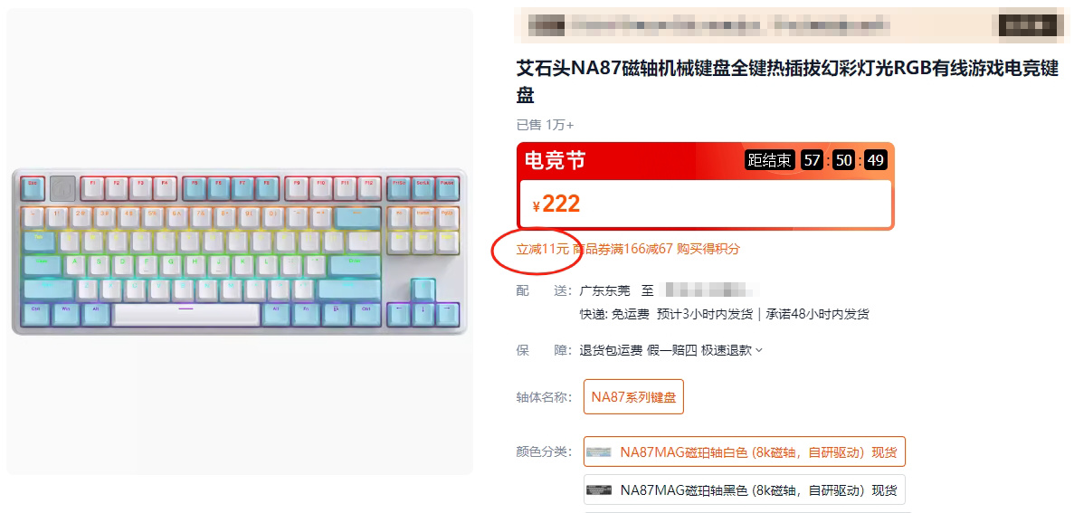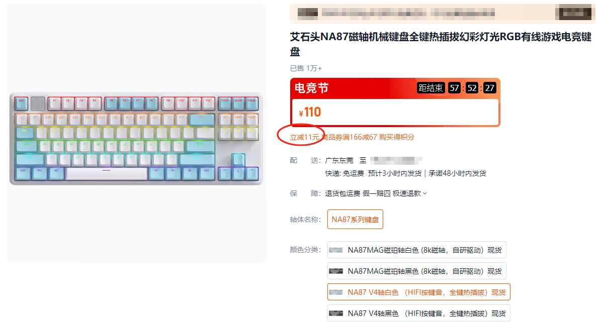 下面是推薦,一百元以下可以考慮艾石頭NA87,搭載了艾石頭V45000W次軸體,帶RGB燈光,整體手感也比較不錯,百元以下買這個絕對是算不上喫虧的。