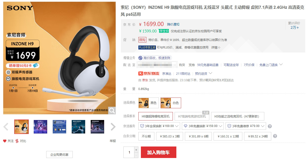 千元以上的話已經算是富哥才能看到的區間了,如果你想要一個佩戴、音質、隔音要求都很高的耳機,那麼你就可以看看索尼H9了,它算是一千多價位比較均衡全能的帶主動降噪功能的遊戲耳機了。