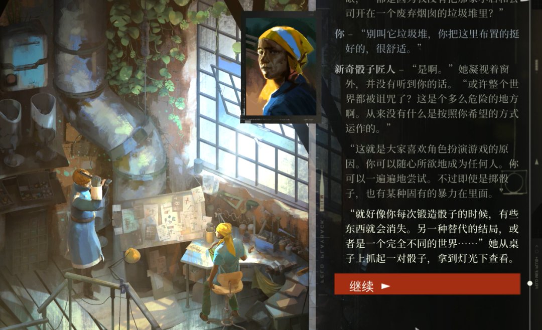 《极乐迪斯科》:玩家在诅咒商业街的烟囱遇到了新奇骰子匠人妮娅