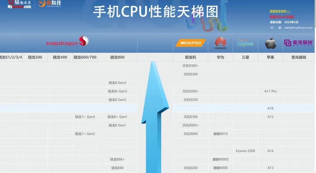 購買手機之前可以瞭解下手機處理器的排行,如果預算2000內的可以看下驍龍8+Gen1的,是8+不是驍龍8Gen1,還有驍龍7+Gen2、7+Gen3、7Gen3、天璣8200、天璣8300,這些都是主流芯片,再往上就是驍龍8Gen2、驍龍8Gen3、天璣9300、麒麟9000S了,像什麼驍龍6Gen1、7Gen1,7sGen2能不考慮就不考慮,性能對比上面的不是很強,還有天璣7000系列往下也不建議選擇,都是天璣1000系列換個名字而已,性能已經不夠了。