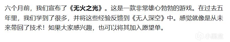經過五年的《無火之光》開發,hellogame將新技術反哺《無人深空》。