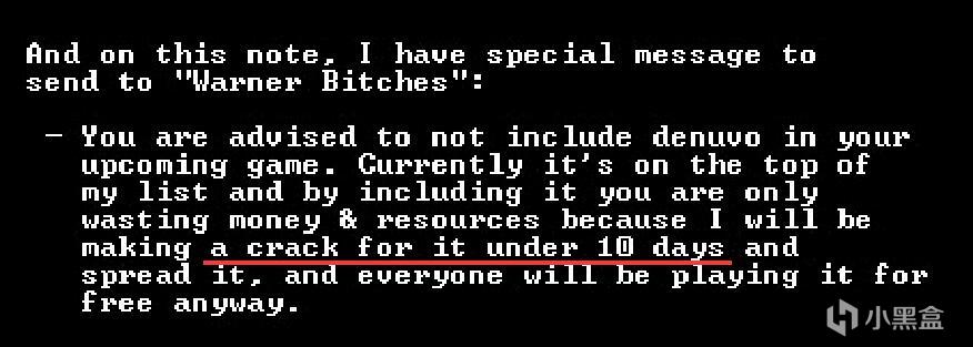EMPRESS还给华纳兄弟写了一封信,告诉他们使用D加密就是浪费钱,这保护不了他们的游戏。