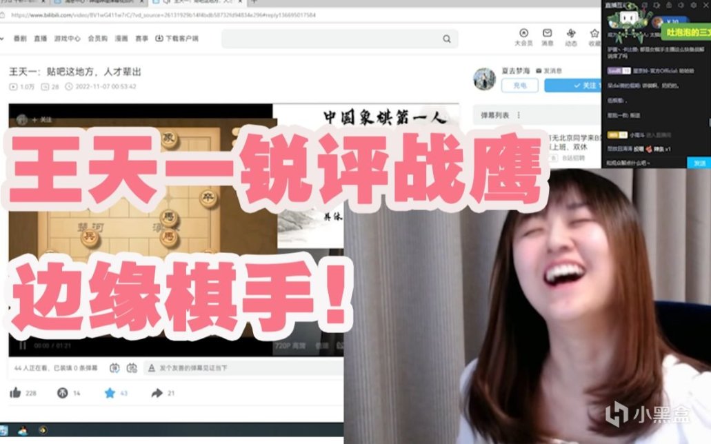 但原視頻講到後面柯潔的時候,屬於是抽象濃度過高,講到最後自己繃不住了,再到後面差不多是柯潔LG杯比賽下完了,隱身一個月回來直播,心態蠻好的,開始是銳評戰鷹,說,“她很優秀,我下得不一定有她好!”這裏其實彈幕拿柯潔和戰鷹比挺離譜的,戰鷹是女棋手,一般拿來和男棋手比說明她很優秀,但彈幕顯然不是這個意思,柯潔後面也被彈幕帶到溝裏。