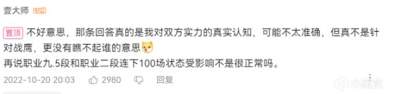然後某乎這位答主註冊了B站賬號,親自回覆戰鷹,再次給予真實傷害,“那條回答真的是我對雙方實力的真實認知,可能不太準確,但真不是針對戰鷹,更沒有瞧不起誰的意思,再說職業九段和職業二段連下100場狀態受影響不是很正常嗎?”